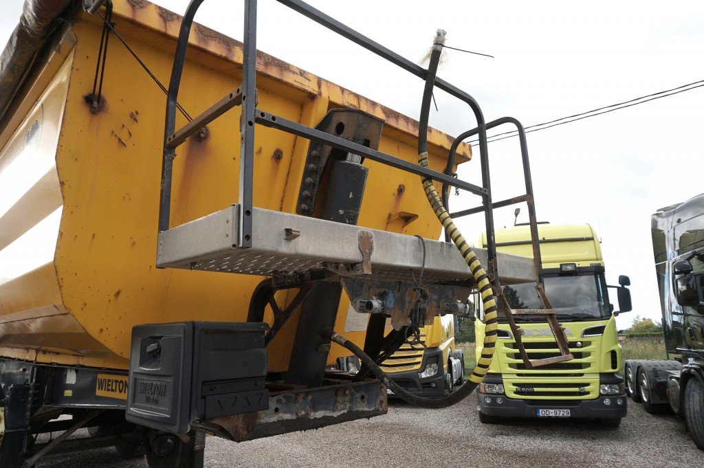 BPW asis ar disku bremzēm, paceļama ass, 27m3 tilpums, HARDOX, tents, metāla rāmis, metāla kravas kaste. Pašmasa 6300kg, pilna masa 39 000kg.