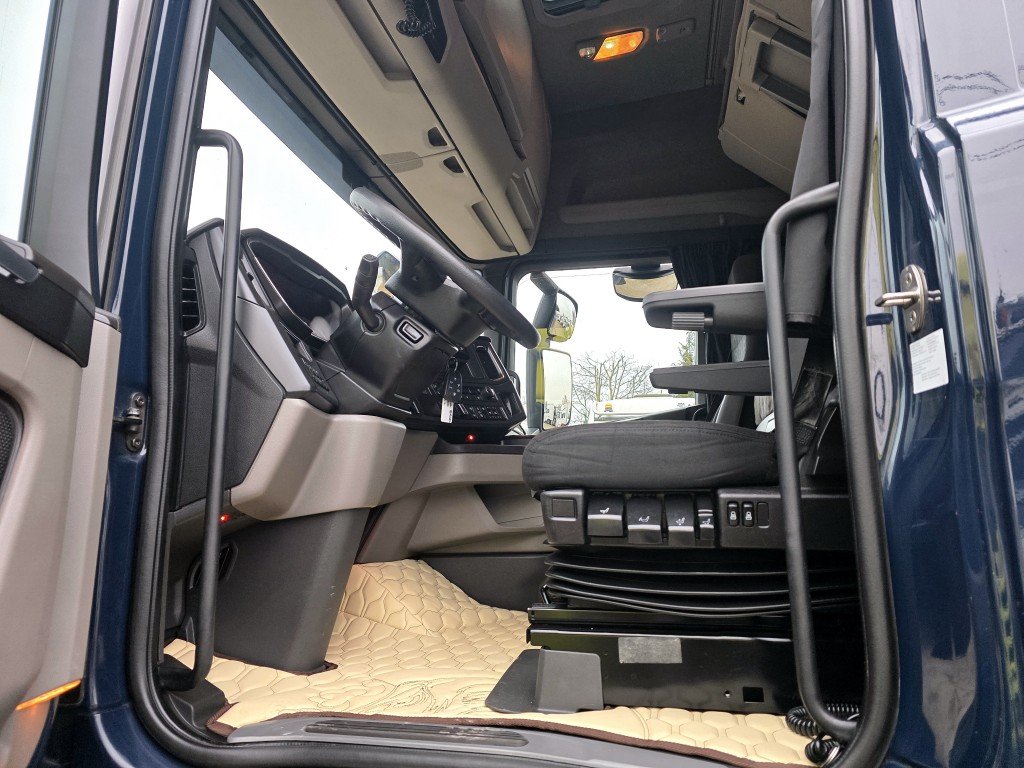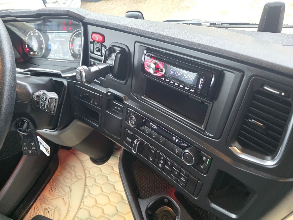 "S" Кабина (самая высокая), SMART 2 тахограф, Opticruise, Euro6, Retarder, полная пневмоподвеска (спереди и сзади), контроль полосы движения, адаптивный круиз-контроль с возможностью настройки дистанции, бортовой компьютер, навигационная система GPS, система оценки водителя, автоматический климат-контроль, радио+CD+USB, рация, холодильник, система экстренного торможения, дополнительные полки, бортовой компьютер, датчик нагрузки на ось, Webasto, топливные баки 1200л. История обслуживания! Тягач из Голландии. Тягач находится в Риге. Оформим лизинг сроком до 5 лет!