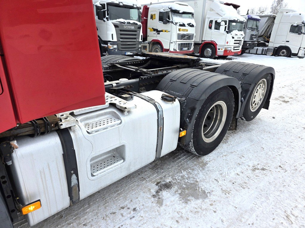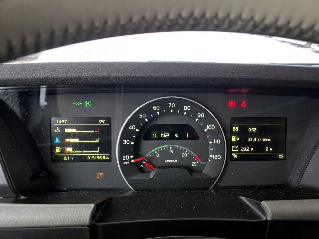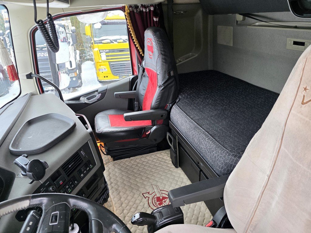 GlobeXL, I-Shift, Euro6, 6x2 с 8 колесами (подъемная ось с одним колесом), VEB+, комплект спойлеров, датчик дождя, оборудование Dynafleet, круиз-контроль с функцией EcoRoll, адаптивный круиз-контроль, функция экстренного торможения, система контроля полосы движения, радио+CD, автономный обогрев (Webasto), два топливных бака 1030 л, бак AdBlue 65 л.
