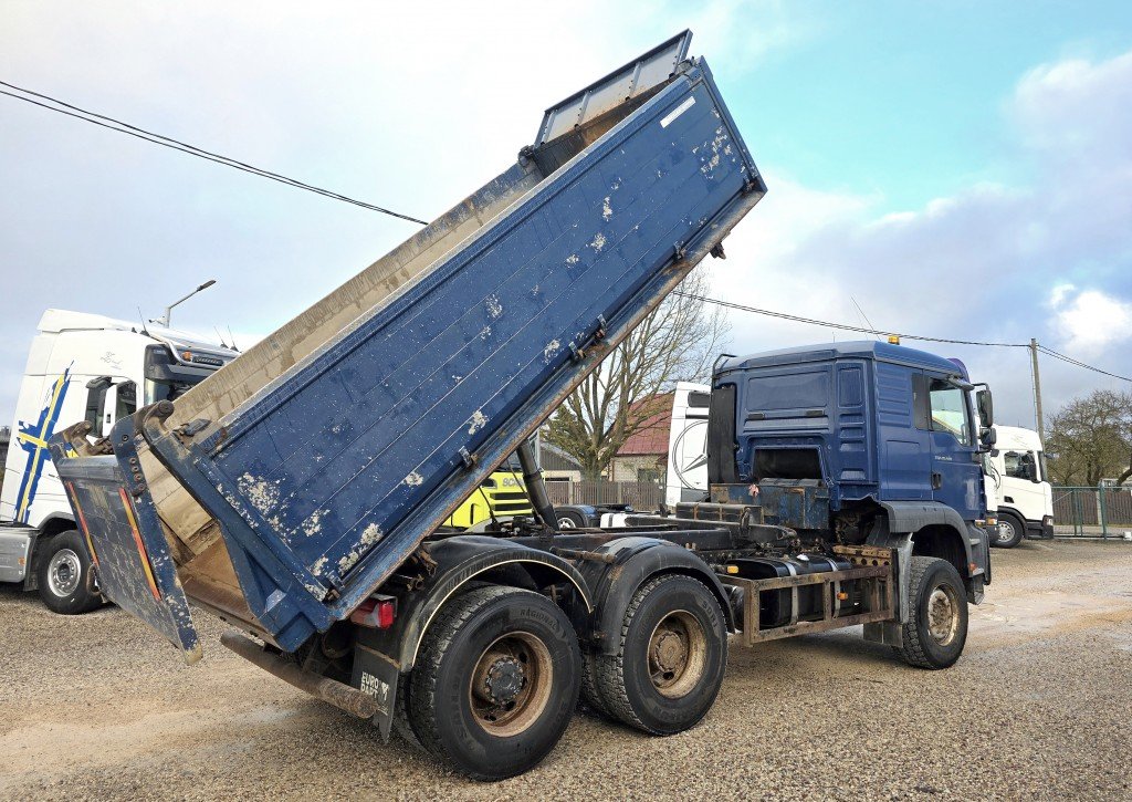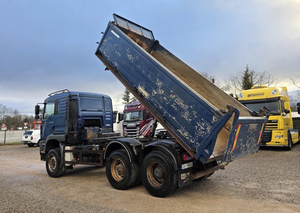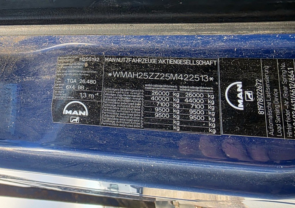 Mehānika, Euro3, 13m3 (Meiller virsbūve), Trīspusējais pašizgāzējs, Kabīne uz gaisa spilveniem, Komforta sēdekļi, Radio+CD, Rācija, Webasto, pašmasa: 11 500kg, pilna masa 26 000kg, motora tilpums: 12 816ccm, VBG sakabe.