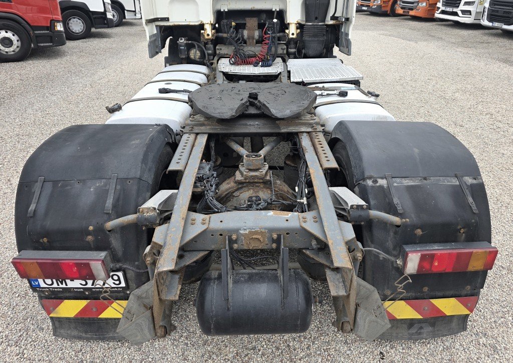 SpaceCab, Automāts, Intarders, Euro5, Spoileru komplekts, Radio+CD, ledusskapis, autonomā apsilde (webasto), divas bākas 1300l. Nesen nomainīta Turbīna un sajūga komplekts! T.A. līdz 16.10.2026. Vilcējs atrodās Rīgā.