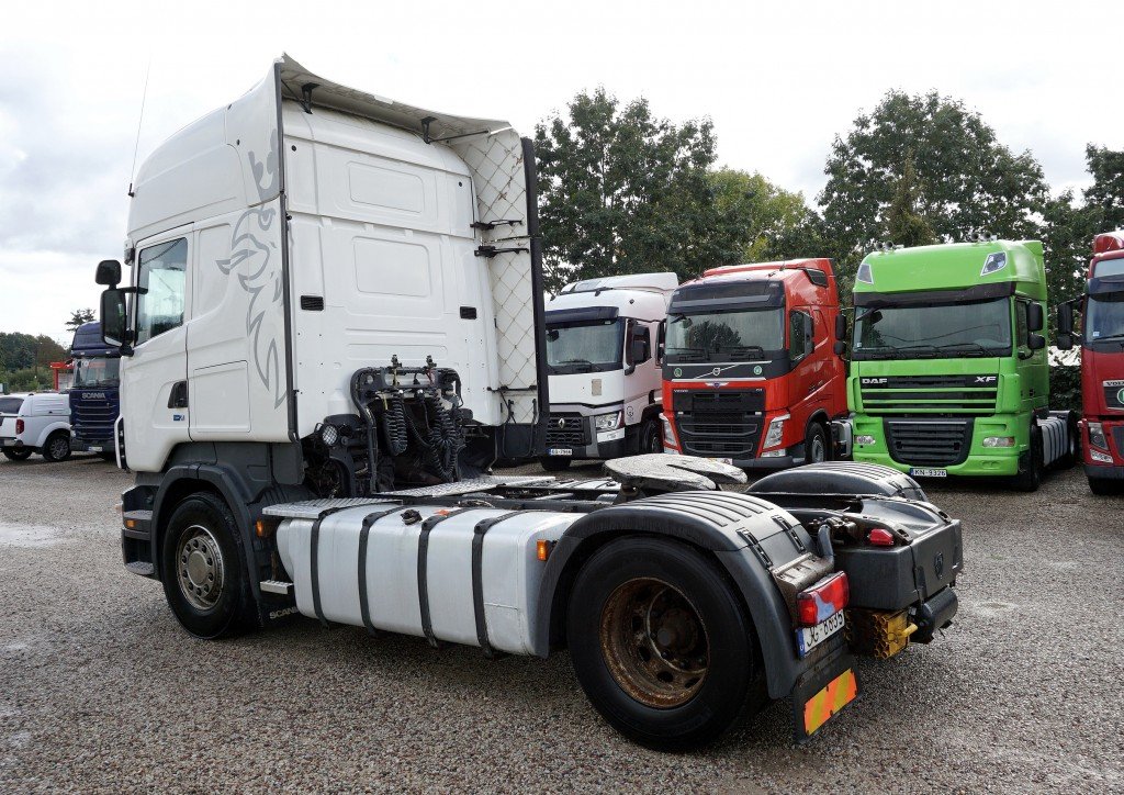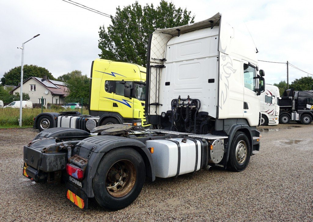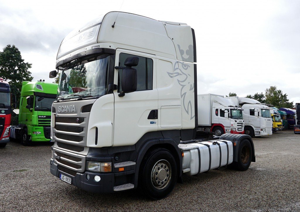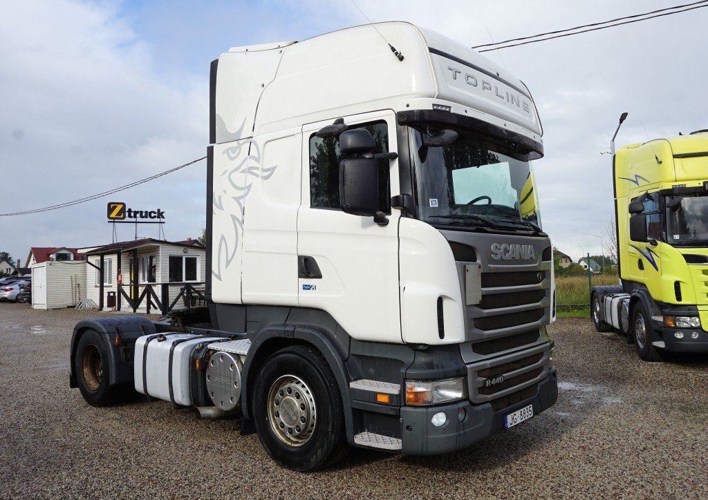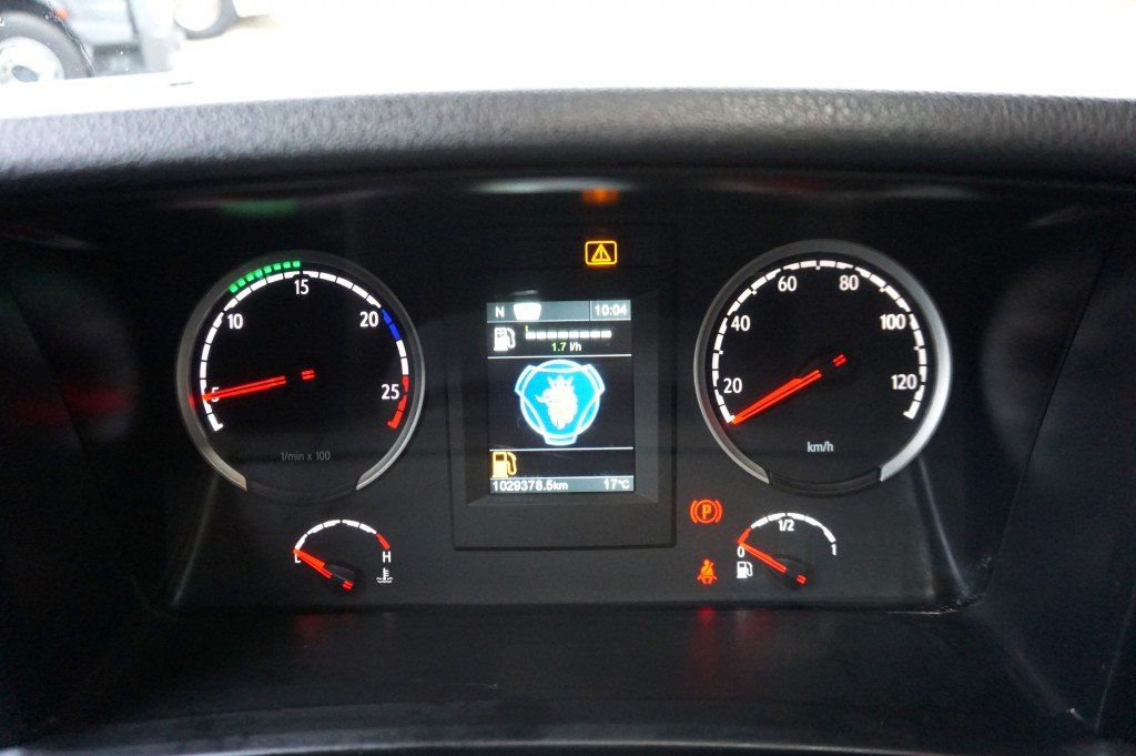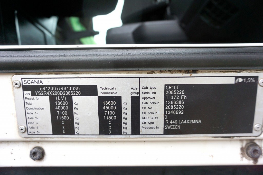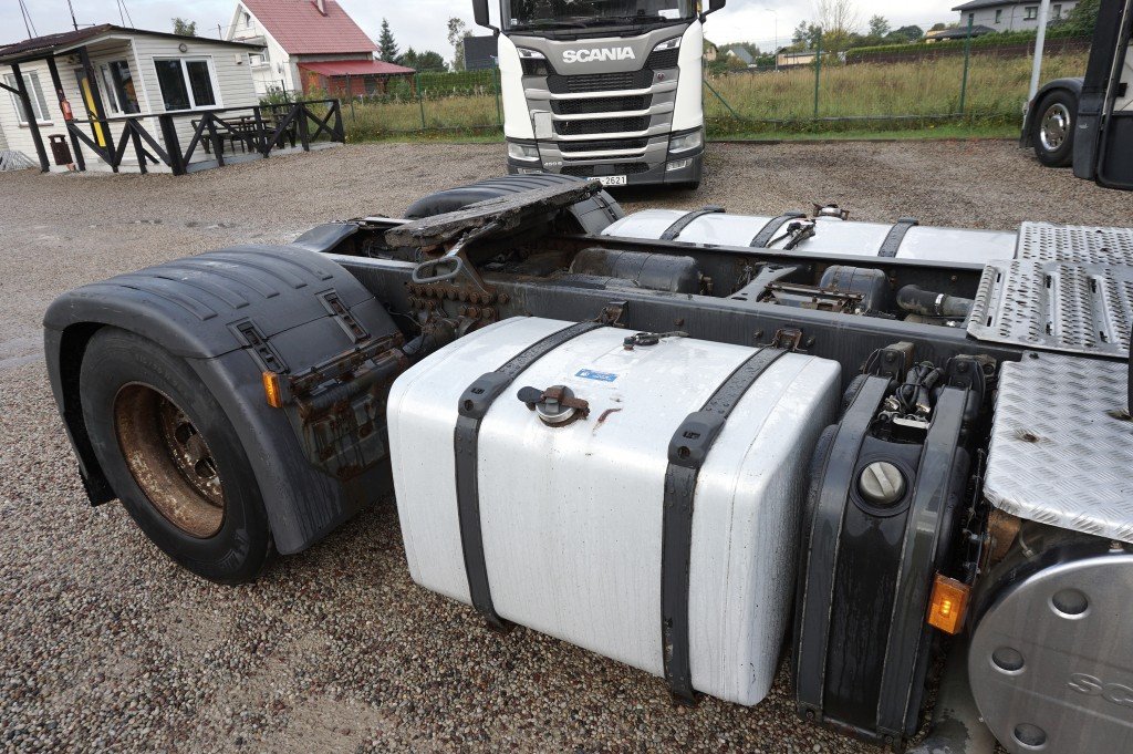 PDe motors, Euro5 ar AdBlue, TopLine kabīne, Opticruise, Ledusskapis, Rādio+CD, papildus plauktiņi, borta dators, ass noslodzes sensors, Webasto, degvielas bākas 1490L. Vilcējs atrodās Rīgā.