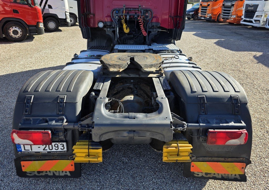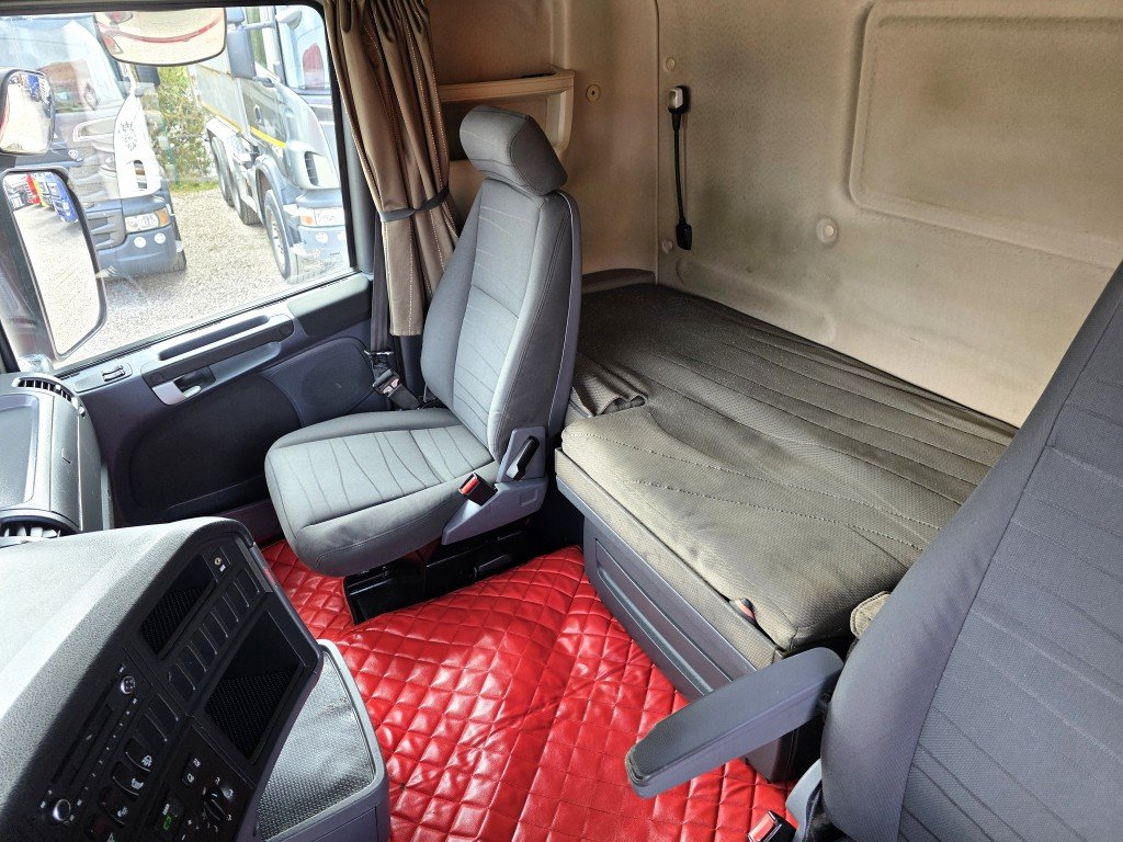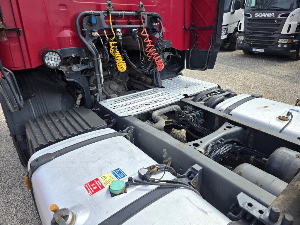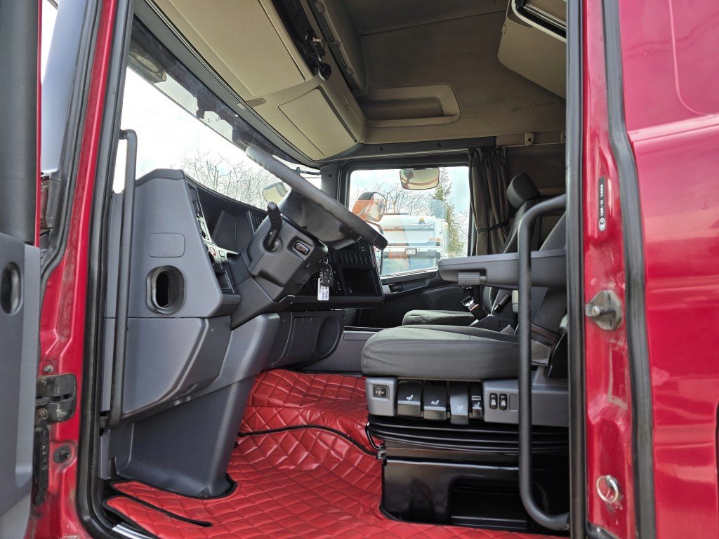 PDe motors, Euro5 ar AdBlue, TopLine kabīne, Opticruise, Ledusskapis, Rādio+CD, papildus plauktiņi, borta dators, ass noslodzes sensors, Webasto, degvielas bākas 1490L. Vilcējs atrodās Rīgā.