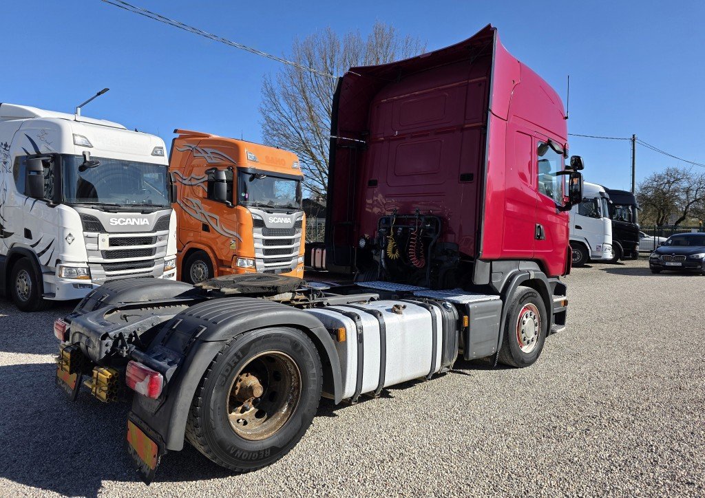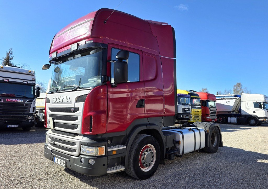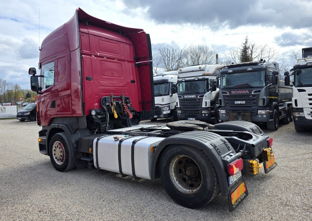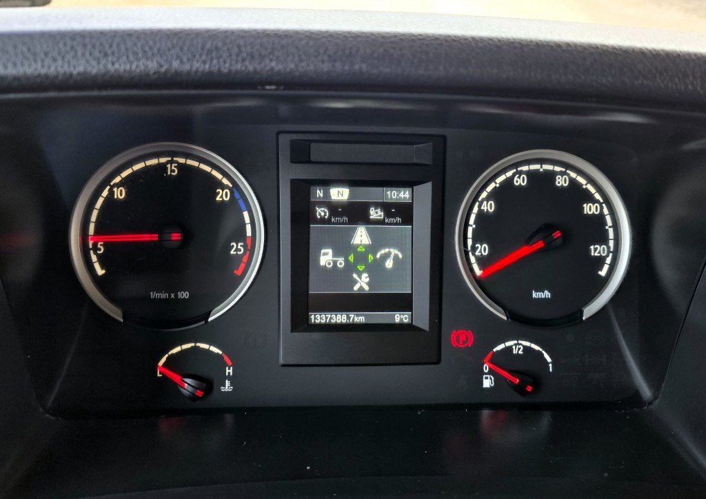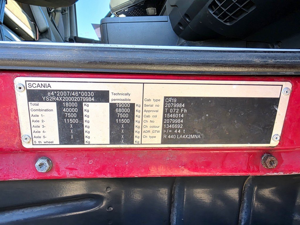 PDe motors, Euro5 ar AdBlue, TopLine kabīne, Opticruise, Ledusskapis, Rādio+CD, papildus plauktiņi, borta dators, ass noslodzes sensors, Webasto, degvielas bākas 1490L. Vilcējs atrodās Rīgā.