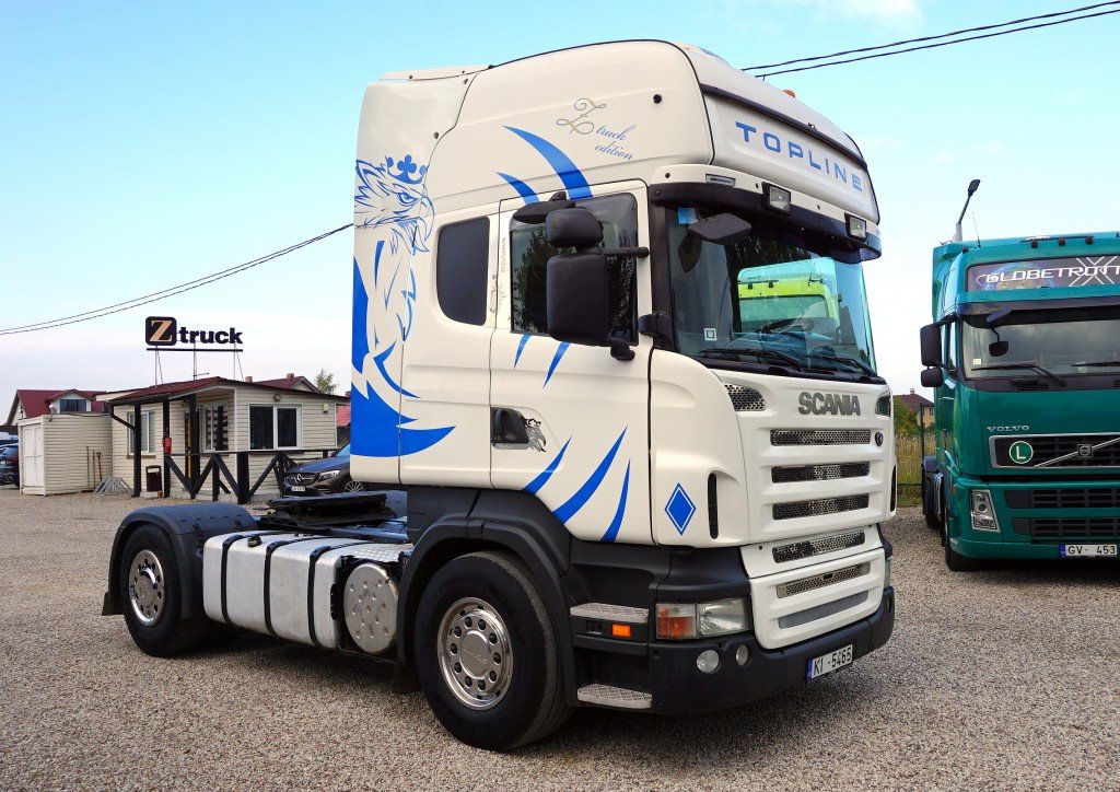 TopLine kabīne, Euro4, Mehānika, Rācija, Ledusskapis, Rādio+CD, borta dators, ass noslodzes sensors, Webasto, divas bākas 1400L. T.A. līdz 28.07.2023. Vilcējs atrodās Rīgā.