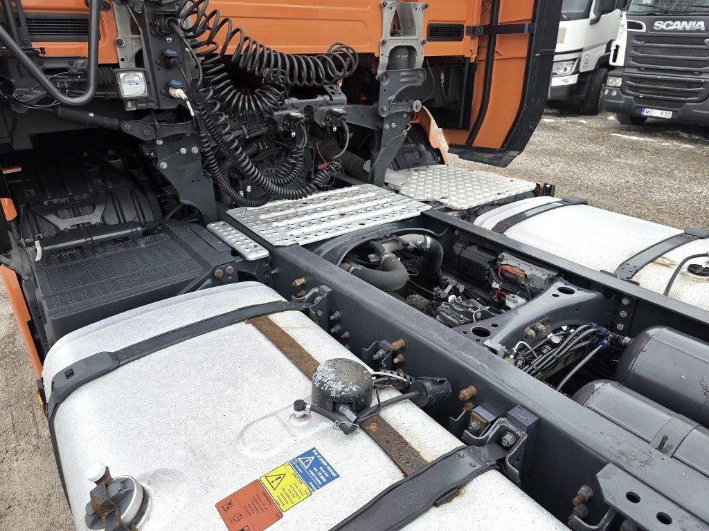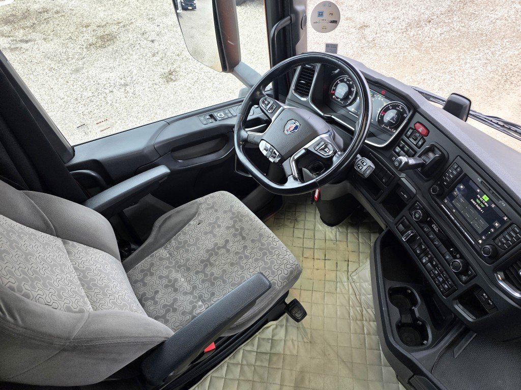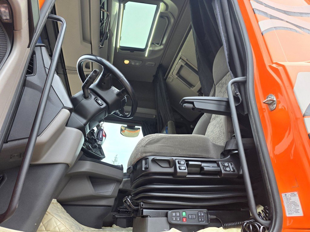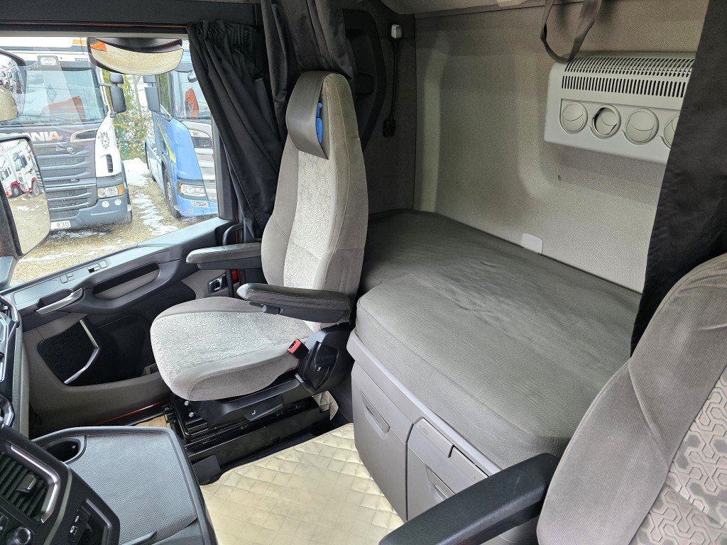 S" kabīne (Augstākā), SMART 2 tahogrāfs, Opticruise, Euro6, Retarders, Joslu kontrole, Adaptīvā krūza kontrole ar distances iestatīšanas iespēju, Borta dators, GPS izekošanas sistēma, Vadītāja novērtēšnas sistēma, Automātiskā klimatkontrole, Rādio+CD+USB, Rācija, ledusskapis, Avārijas bremzēšanas sistēma, papildus plauktiņi, borta dators, ass noslodzes sensors, Webasto, Degviela bākas 1490L. T.A. līdz 02.06.2026.
