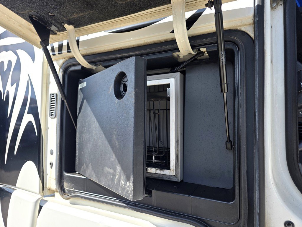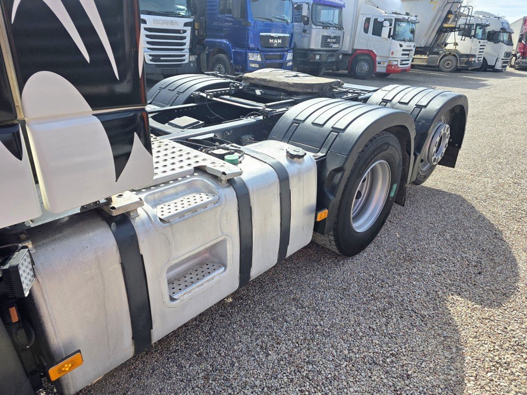 GlobeXL kabīne, I-Shift, Euro5 EEV, Hidraulika, 6x2 ar 8 riteņiem (Paceļama ass BEZ dubultiem riteņiem), papildus gaismas, spoileru komplekts, 220v pārveidotājs, ledusskapis, Kafijas automāts, komforta sēdekļi, Rādio+CD, autonomā apsilde (webasto), degvielas bāka 740L, AdBlue bāka 65L. Vilcējs atrodas Rīgā.